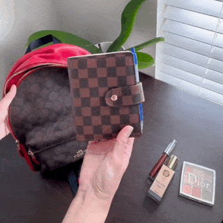 It’s designed to hold your essentials — cards, cash, notes, and even a passport. The pockets and binder rings make it easy to keep everything tidy and accessible.